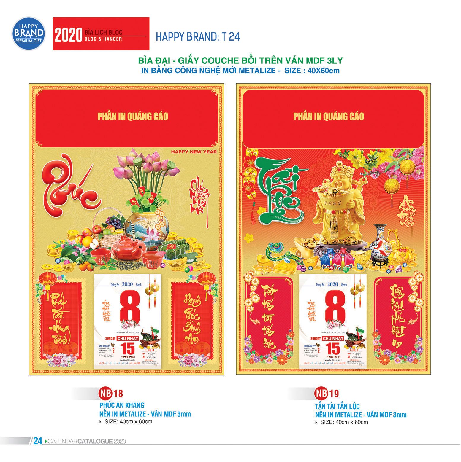 Lịch Bloc bìa đại - Giấy Couche bồi trên ván MDF - TT10