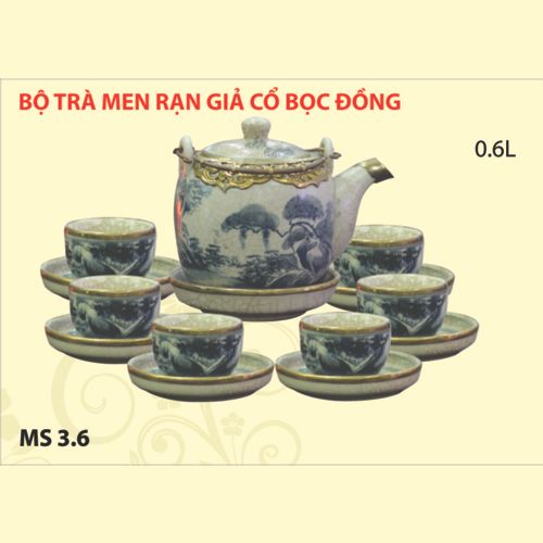 Bộ Trà Men Rạn Giả Cổ Bọc Đồng