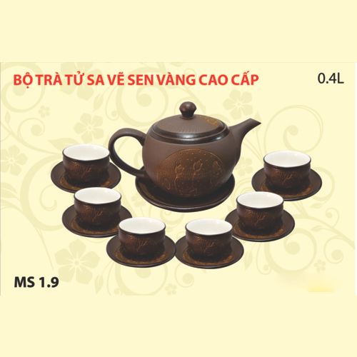 Bộ Trà Tử Sa Vẽ Sen Vàng Cao Cấp