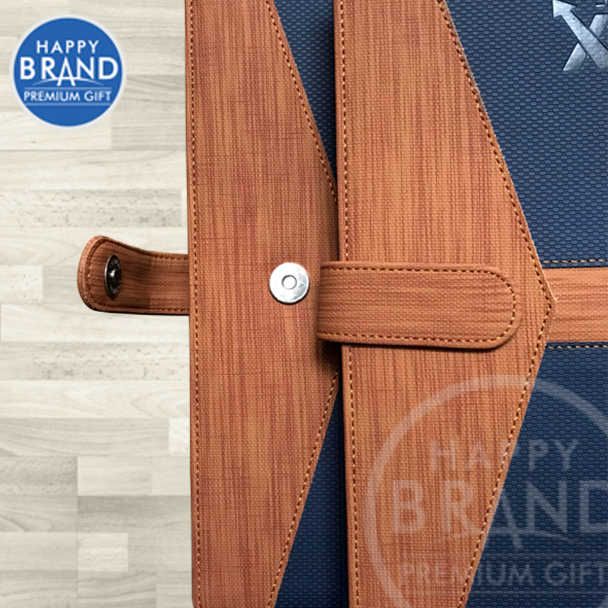 - Bìa da: Chất liệu Simili hoặc da PU tùy theo yêu cầu, khóa nam châm