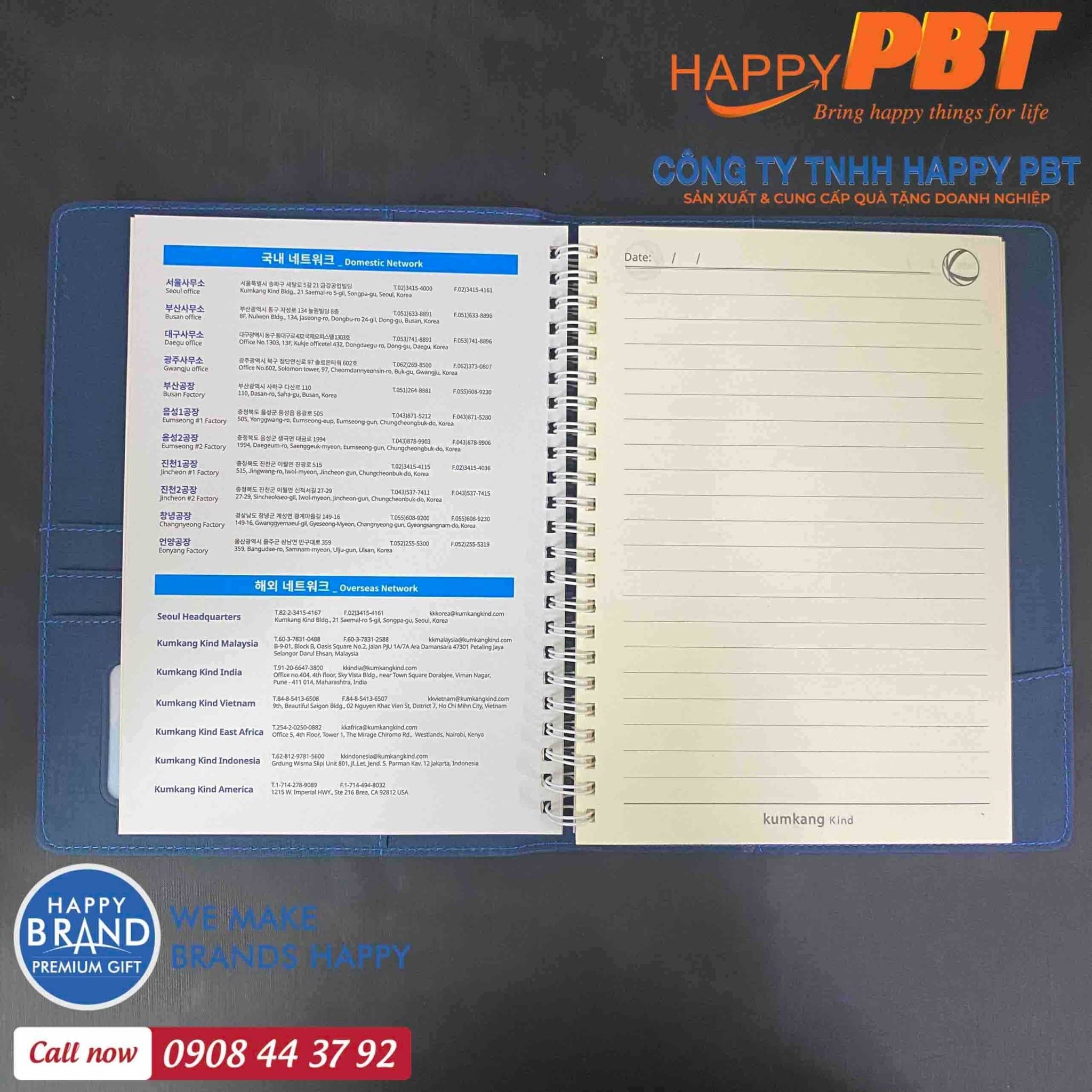 Quy cách in ấn logo trên sổ tay quà tặng Happy PBT